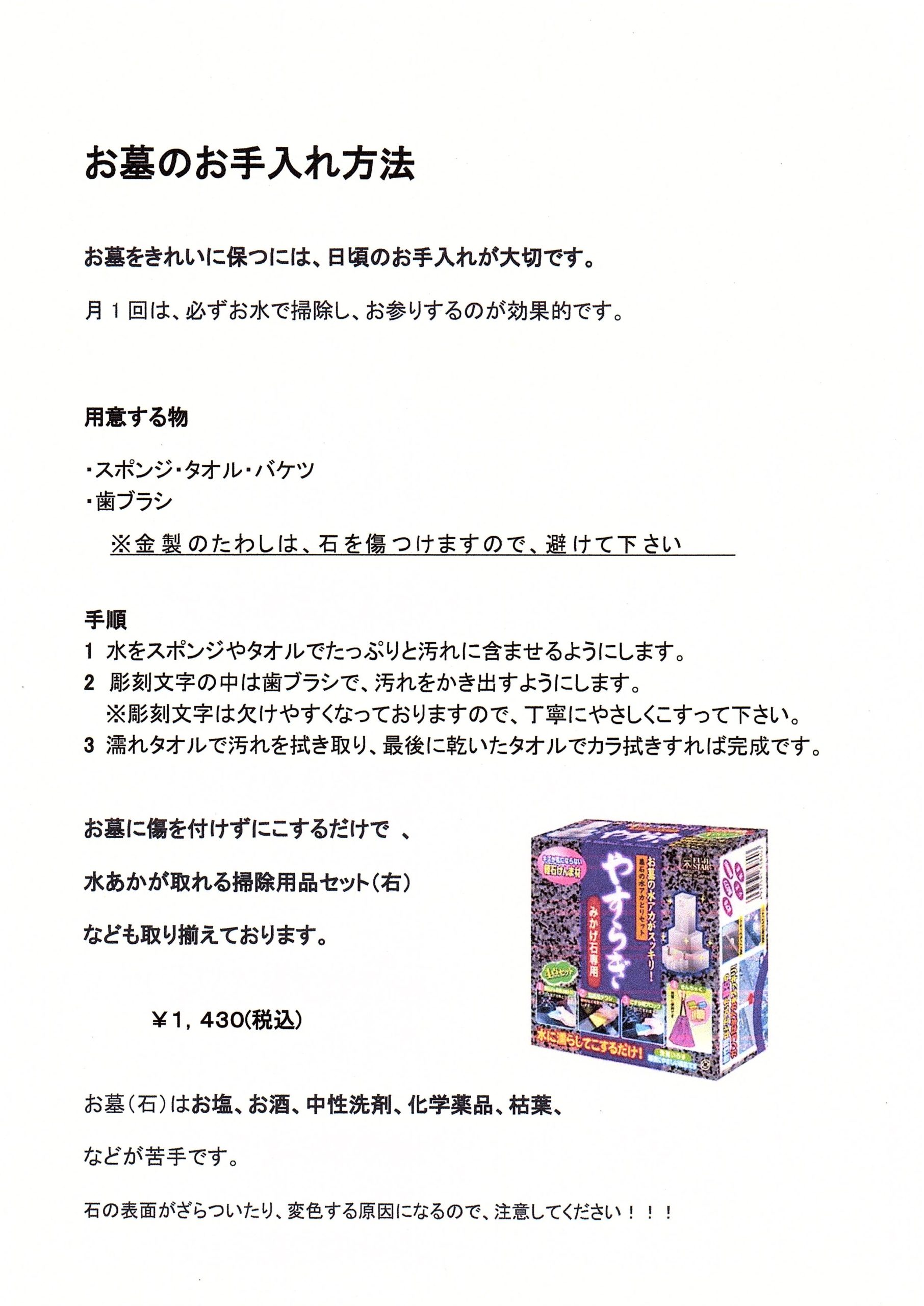 当店がおすすめするお墓掃除の仕方。