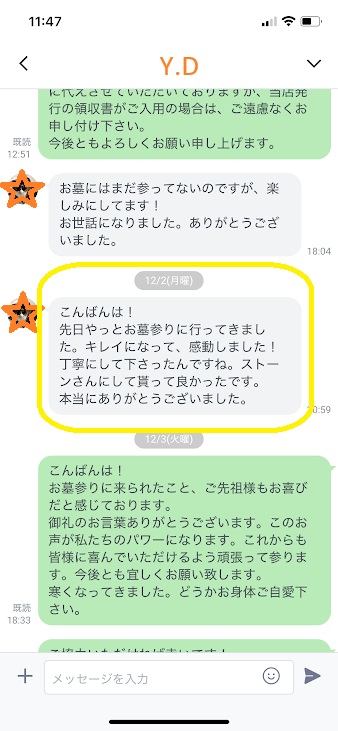 ※実際にお金を出すのは現生のご子孫様ですが、そういうきっかけをくれたこと(予算や時期などすべて)はご先祖様がお膳立てしてくれたのだと感じています。